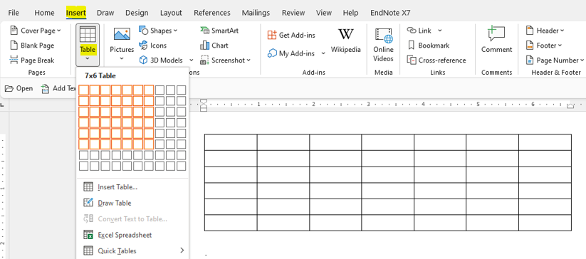 – Chèn bảng, xác định số hàng và cột (7 cột và 6 hàng) theo thời khoá biểu.