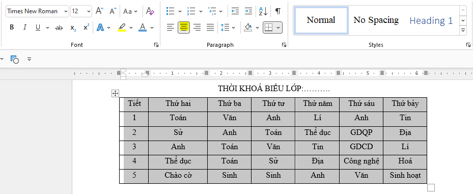 Bước 5: Lưu văn bản với tên “Thời khóa biểu”