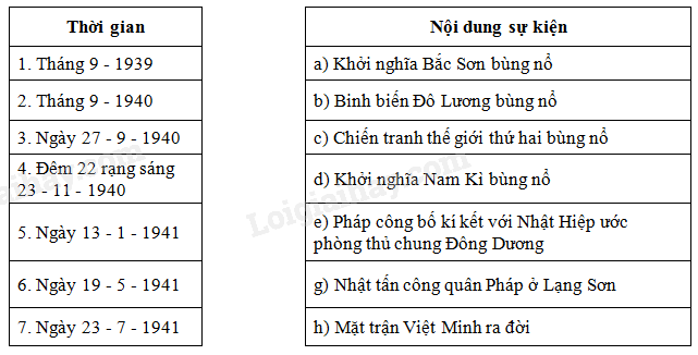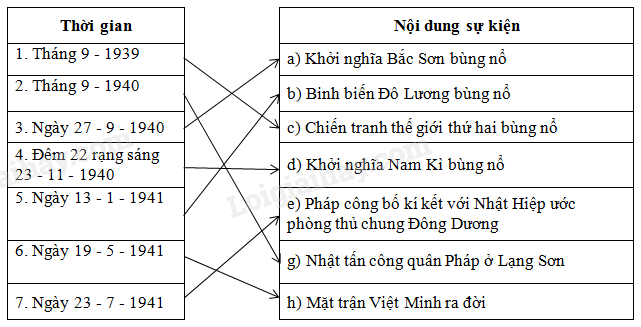 Hãy nối thời gian ở cột bên trái với nội dung sự kiện ở cột bên phải cho phù hợp