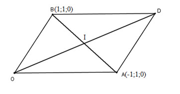 \( \Rightarrow \left\{ \begin{array}{l}{x_I} = \dfrac{{{x_A} + {x_B}}}{2} = \dfrac{{ – 1 + 1}}{2} = 0\\{y_I} = \dfrac{{{y_A} + {y_B}}}{2} = \dfrac{{1 + 1}}{2} = 1\\{z_I} = \dfrac{{{z_A} + {z_B}}}{2} = \dfrac{{0 + 0}}{2} = 0\end{array} \right.\) \( \Rightarrow I\left( {0;1;0} \right)\)