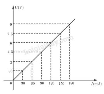 a) Hãy vẽ đồ thị \(U = f(I)\) của quang điện trở này, nếu cho \(U\) biến thiên từ \(1,5V\) đến \(9V.\)