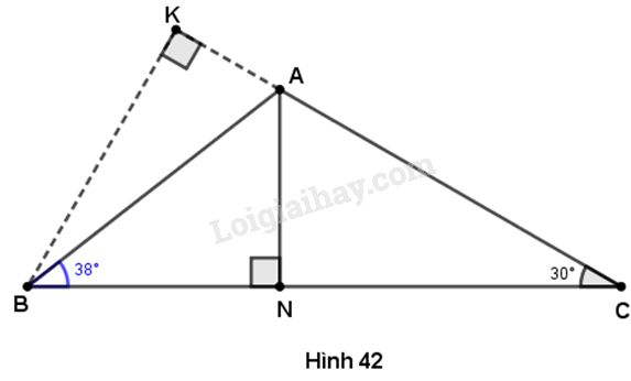 Cho tam giác ABC, trong đó \(BC = 11cm,\,\,\widehat {ABC} = {38^o},\,\,\widehat {ACB} = {30^o}\)..Gọi N là chân đường cao vuông góc kẻ từ A đến cạnh BC. Hãy tính:
