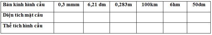 +) Công thức tính thể tích mặt cầu bán kính \(R\) là: \(V = {4 \over 3}\pi {R^3}.\)
