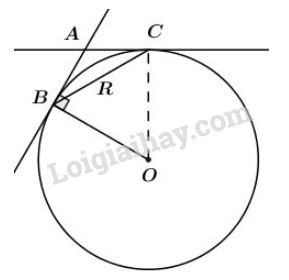 Cho đường tròn \((O; R)\) và dây cung \(BC = R\). Hai tiếp tuyến của đường tròn \((O)\) tại \(B, C\) cắt nhau tại \(A\). Tính \(\widehat {ABC},\widehat {BAC}\).