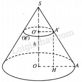 Cho hình nón N có bán kính đáy R, góc giữa đường sinh và đáy của hình nón bằng \(\alpha \). Một mặt phẳng (P) song song với đáy hình nón, cách đáy hình nón một khoảng h và cắt hình nón theo đường tròn (C ).