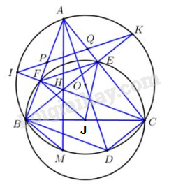 Từ đó suy ra \(JB = JC = JE = JF \Rightarrow \) 4 điểm B, C, E, F cùng thuộc đường tròn đường kính BC.