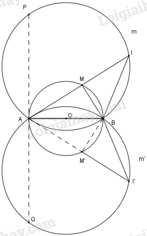 Nhưng tiếp tuyến \(PQ\) với đường tròn đường kính \(AB\) tại \(A\) là vị trí giới hạn của \(AM\). Do đó,  điểm \(I\) thuộc hai cung \(PmB\) và \(Qm’B\).