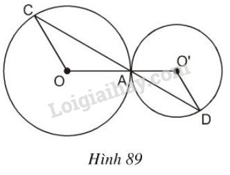 Trên hình 89 hai đường tròn tiếp xúc nhau tại A. Chứng minh rằng OC//O'D.