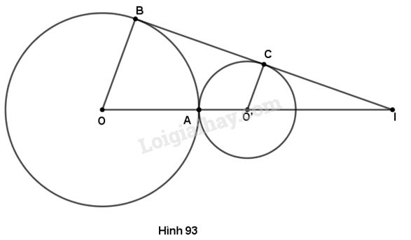 Cho hai đường tròn (O ; 3cm) và (O’ ; 2cm) tiếp xúc ngoài tại A. Gọi BC là tiếp  tuyến chung ngoài của hai đường tròn, \(B \in \left( O \right),C \in \left( {O’} \right)\). Gọi I là giao điểm của đường thẳng BC và OO’. Tính độ dài O’I.