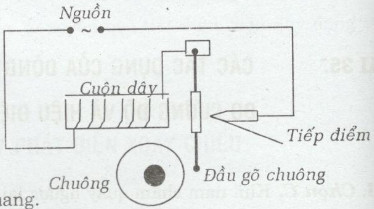 Giải bài 35.9 trang 77 SBT Vật lí 9. Dựa vào tác dụng từ của dòng điện xoay chiều, hãy vẽ sơ đồ thiết kế một chuông điện chạy
