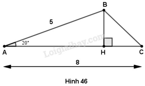 Trong tam giác vuông \(AHB,\) ta có \(BH = AB.\sin \widehat {BAC} = 5.\sin {20^o}\)\( \approx 1,71\left( {cm} \right).\)