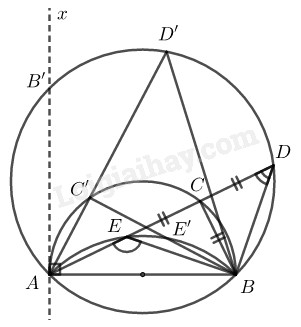 Lấy điểm \(D’\) tùy ý trên cung \(BB’,\) nối \(AD’\) cắt đường tròn đường kính \(AB\) tại \(C’.\) Nối \(BC’, BD’.\)