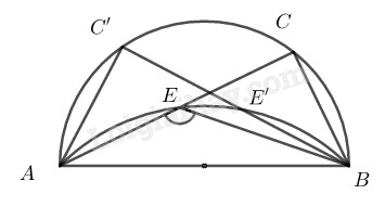 Lấy \(E’\) bất kỳ trên cung chứa góc \(135^\circ .\) Kẻ \(AE’\) cắt đường tròn đường kính \(AB\) tại \(C’.\)  Nối \(BE’, BC’.\)