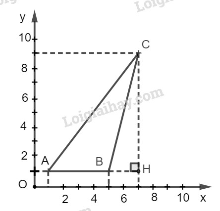 Trong mặt phẳng tọa độ, các đỉnh của tam giác \(ABC\) có tọa độ như sau: \(A(1 ; 1) ; B(5 ; 1) ; C(7 ; 9).\)