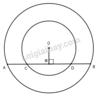 Cho hai đường tròn đồng tâm O. Dây AB của đường tròn lớn cắt đường tròn nhỏ ở C và D. Chứng minh rằng AC=BD.