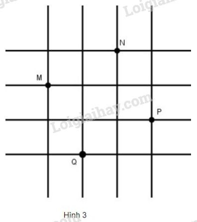 Đố: Trên lưới ô vuông, mỗi ô vuông cạnh \(1cm\), cho bốn điểm \(M,\ N,\ P,\ Q\) (h.3).