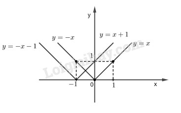 Ta lấy phần nằm trên Ox của các đồ thị hàm số \(y = x+1\) và \(y = -(x+1)\) ta được đồ thị hàm số \(y = \left| x+1 \right|\)
