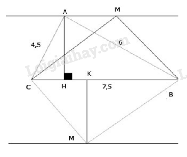 Từ đó, \( S_{ABC}=S_{MBC} \Leftrightarrow MK= AH=3,6cm.\)
