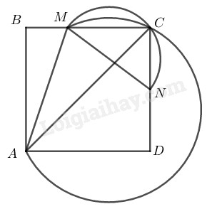 +) Ta có \(\widehat {ACM} = 45^\circ \) (vì hình vuông có đường chéo là phân giác) nên \(C\) nằm trên cung chứa góc \(45^\circ\) vẽ trên \(AM.\)