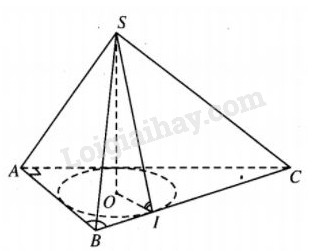 Gọi I là điểm tiếp xúc của BC với đường tròn nội tiếp \(\Delta ABC\) thì \(OI \bot BC\) và \(SI \bot BC\) nên \(\widehat {SIO}\) =\(\beta .\)