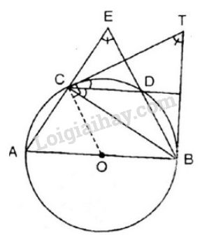 \(sđ\overparen{AC}=sđ\overparen{CD}=sđ\overparen{DB}=60^0\). Hai đường thẳng \(AC\) và \(BD\) cắt nhau tại \(E\). Hai tiếp tuyến của đường tròn tại \(B\) và \(C\) cắt nhau tại \(T\). Chứng minh rằng: