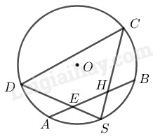Trên đường tròn tâm \(O\) có một cung \(AB\) và \(S\) là điểm chính giữa của cung đó. Trên dây \(AB\) lấy hai điểm \(E\) và \(H.\) Các đường thẳng \(SH\) và \(SE\) cắt đường tròn theo thứ tự tại \(C\) và \(D.\) Chứng minh \(EHCD\) là một tứ giác nội tiếp.