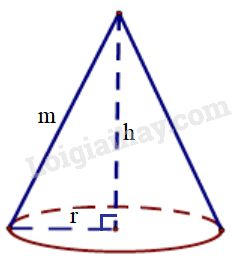 Hình nón  có bán kính đáy \(r\), chiều cao \(h\), có thể tích là: \(\displaystyle V = {1 \over 3}\pi {r^2}h\).