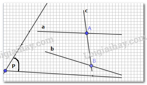 Đường thẳng c cắt hai đường thẳng a, b lần lượt tại AB