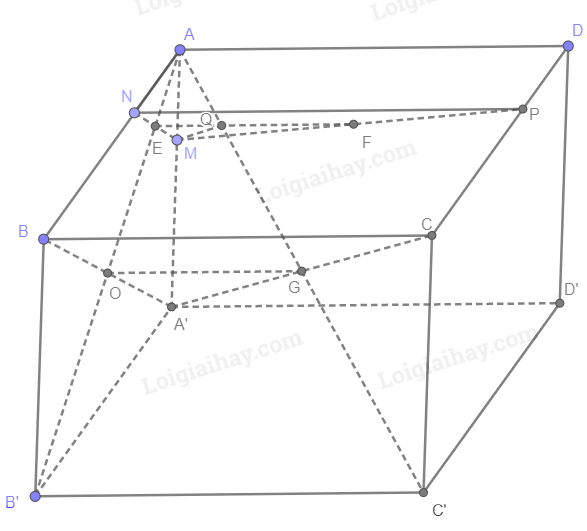 Xét tam giác AA’G có: \(\frac{{AM}}{{AA’}} = \frac{{AQ}}{{AG}} = \frac{1}{3} \Rightarrow MQ\,{\rm{// }}A’G\) hay MQ // A’C.