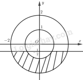 b) Phần gạch chéo được giới hạn bởi hai đường tròn \({x^2} + {y^2} = 1\) và \({x^2} + {y^2} = 4\) và phần ảo \(y \le  – \dfrac{1}{2}\).