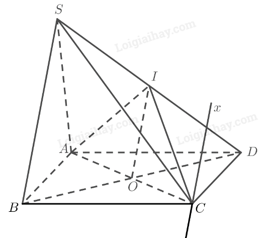 \(\begin{array}{l}Cx = \left( {IAC} \right) \cap \left( {SBC} \right)\\SB = \left( {SB{\rm{D}}} \right) \cap \left( {SBC} \right)\\OI = \left( {IAC} \right) \cap \left( {SB{\rm{D}}} \right)\\SB\parallel OI\end{array}\)