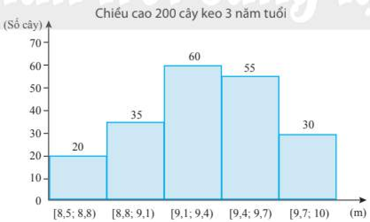 Kết quả đo chiều cao của 200 cây keo 3 năm tuổi ở một nông trường được biểu diễn ở biểu đồ dưới đây.
