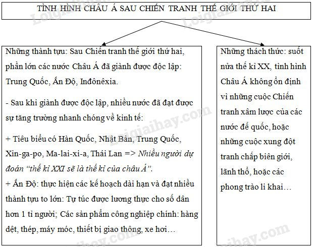 Hoàn thiện sơ đồ sau, qua đó làm rõ tình hình các nước Châu Á từ sau Chiến tranh thế giới thứ hai