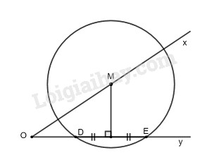Cho góc nhọn \(xOy\) và hai điểm \(D, E\) thuộc tia \(Oy.\) Dựng đường tròn tâm \(M\) đi qua \(D\) và \(E\) sao cho tâm \(M\) nằm trên tia \(Ox\).