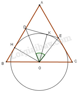 Cho tam giác đều \(ABC\), \(O\) là trung điểm của \(BC\). Trên các cạnh \(AB, AC\) lần lượt lấy các điểm di động \(D\) và \(E\) sao cho \(\widehat {DOE} = 60^\circ .\)