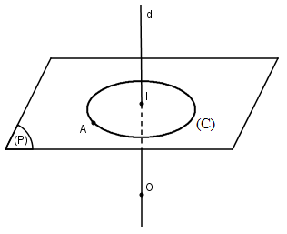 Giả sử \((S)\) là một mặt cầu đi qua \(A\) và có tâm \(O\) nằm trên \(d\). Gọi \((P)\) là mặt phẳng đi qua \(A\) và vuông góc với \(d\), \((P)\) cắt mặt cầu \((S)\) theo đường tròn \((C)\) có tâm là giao điểm \(I\) của \((P)\) và \(d\), có bán kính \(r = IA\). Vậy đường tròn \((C)\) cố định và mặt cầu \((S)\) luôn luôn đi qua \((C)\).
