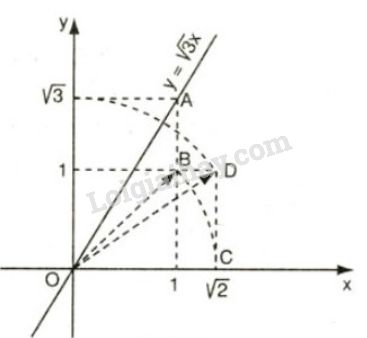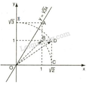 – Cho \(x=1\) ta được \(y=\sqrt 3.1=\sqrt 3\). Suy ra \(A(1;\sqrt 3)\)