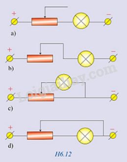 Mạch điện gồm biến trở và bóng đèn trong hình H6.11 tương đương với mạch điện nào trong hình H6.12?