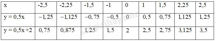 Cho các hàm số y = 0,5x và y = 0,5x + 2