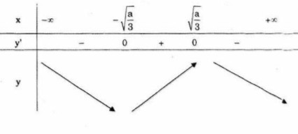 • Nếu \(a > 0\) thì \(y’ = 0\) \( \Leftrightarrow x =  \pm {\sqrt {a  \over 3}}\)