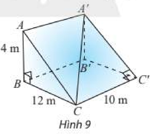 Một con dốc có dạng hình lăng trụ đứng tam giác với kích thước như trong Hình 9.
