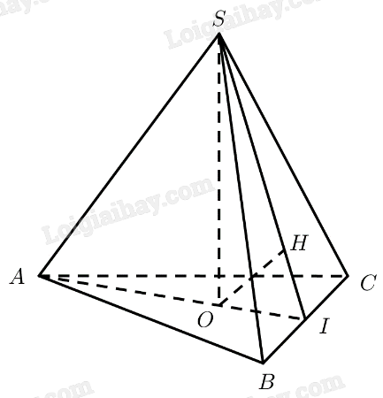 Gọi \(I\) là trung điểm của \(BC\), kẻ \(OH \bot SI\left( {H \in SI} \right)\).