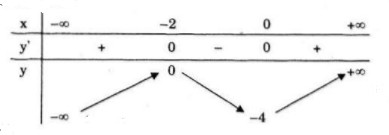 Hàm số đạt cực tiểu tại \(x=0\;;y_{CT}=-4\)