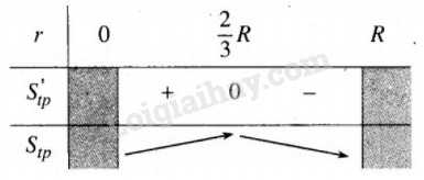 Vậy \({S_{tp}}\) đạt giá trị lớn nhất khi \(r = {2 \over 3}R.\)