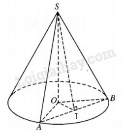 Giả sử là tâm của đáy hình nón và mặt phẳng \(\left( \alpha  \right)\) đi qua hai đường sinh SA, SB.