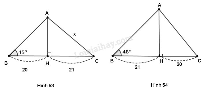 Cho tam giác có một góc bằng 45o. Đường cao chia một cạnh kề với góc đó thành các phần 20cm và 21cm. Tính cạnh lớn hơn trong hai cạnh còn lại (lưu ý có hai trường hợp).