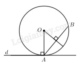 Ta có: \(OA\) vuông góc với \(d\) tại \(A\) nên \(d\) là tiếp tuyến của \((O).\)