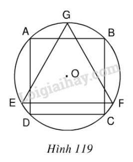 Cho hình vuông ABCD nội tiếp đường tròn tâm O, bán kính R và GEF là tam giác đều nội tiếp đường tròn đó, EF là dây song song với AB (h.119).