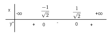 \(y” = 0 \Leftrightarrow x =  \pm \sqrt {{1 \over 2}} \)