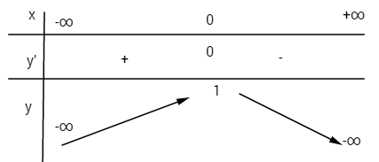 & y’ = 0 \Leftrightarrow x = 0;y\left( 0 \right) = 1 \cr} \)